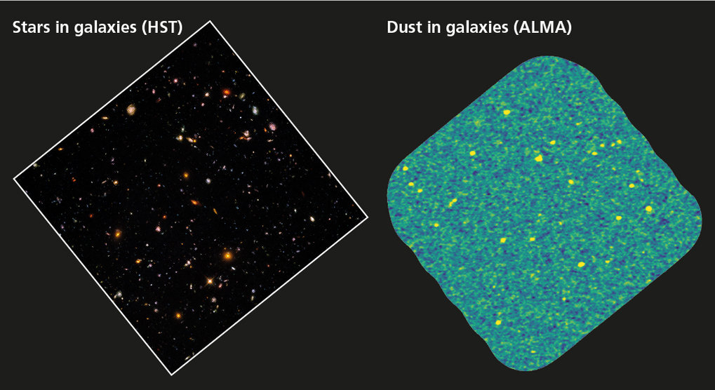 Las observaciones han permitido al grupo dirigido por Fabian Walter (Instituto Max Planck de Astronomía) estudiar cómo las reservas de gas y polvo del Universo han cambiado con el paso del tiempo, desde solo 2 mil millones de años después del Big Bang al presente.