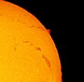 tomada por John Stetson, los dos filamentos miden más de 400000 km de principio a fin, más o menos la misma distancia que hay de la Tierra a la Luna. Uno de ellos está a punto de alcanzar el limbo del disco solar. Cuando lo haga, será un bella prominencia.