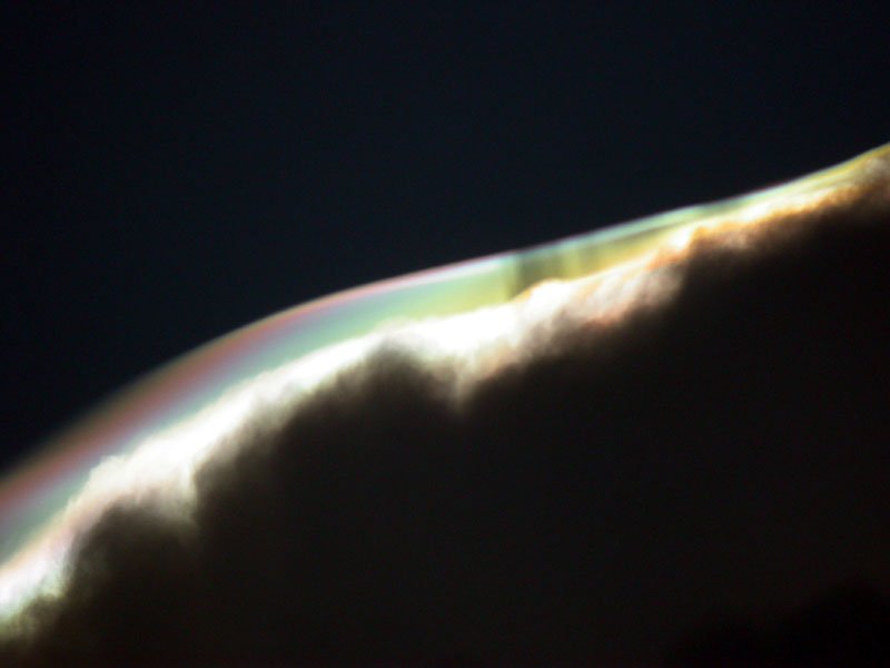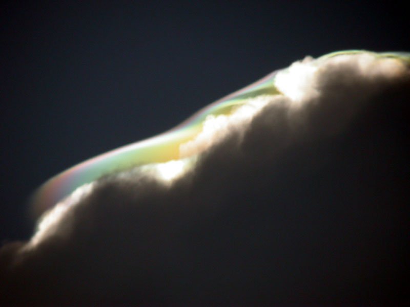 Un experto en óptica atmosférica, Les Cowley, explica que las fotos muestran un fenómeno de iridiscencia en un tipo especial de nubes que suele formarse encima de las nubes de tipo cúmulo. Durante el día, el aire húmedo y caliente del cúmulo asciende, y a veces empuja a otra capa de aire húmedo por encima de él, obligándole a ascender a su vez. Esto hace que la capa se expanda y, consecuentemente se enfríe. Entonces el vapor de agua se condensa con rapidez formando una fina capa de gotitas de agua que quedan por encima del cúmulo. Las gotitas de cualquier nube que de repente se haya formado siguiendo este mecanismo son del mismo tamaño, condición ideal para que se produzca la iridiscencia.